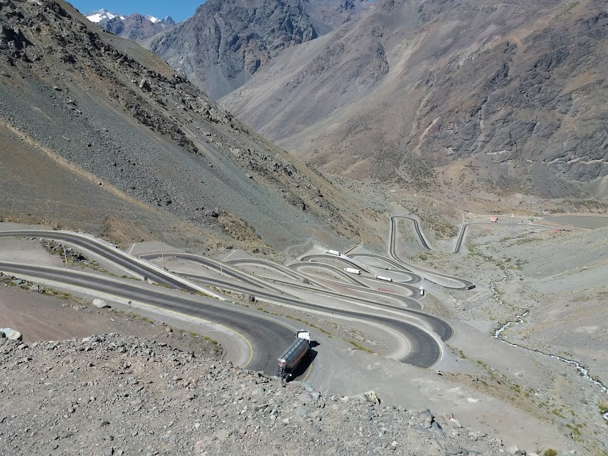 Desde Santiago, la Ruta 60 asciende como una vena de asfalto que trepa hacia Los Andes y se interna en la cordillera hasta fundirse con el paso hacia Argentina, acompañada por montañas, viento y horizonte.